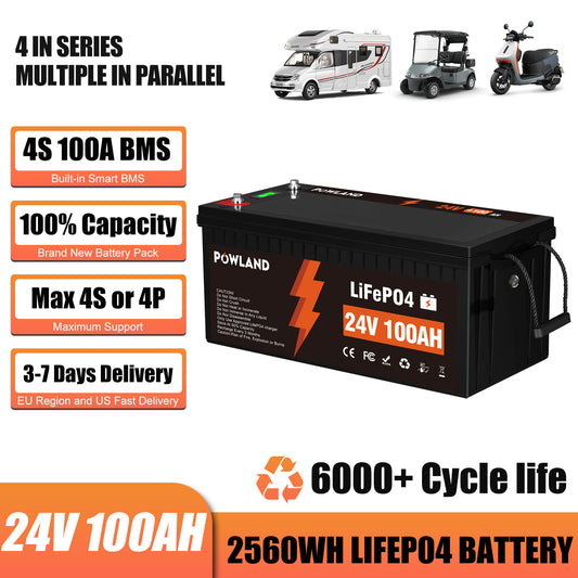 POWLAND LiFePO₄ battery 24V-100AH BMS Series and parallel connection Fast Charge Balanced
